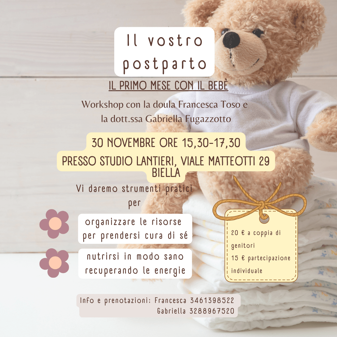Un workshop rivolto alle coppie e alle donne in attesa per fornire loro informazioni e strumenti pratici per sapersi prendere cura di sé, nutrirsi in modo adeguato a soddisfare i bisogni alimentari propri e del bebè e recuperare le energie nel Post-Parto.